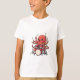 This dynamic illustration captures a talented red octopus fully immersed in an intense percussion solo. Using its natural advantage, the aquatic musician wields four drumsticks simultaneously with its tentacles, striking a rhythm across a comprehensive drum set. The kit itself matches the octopus in a vibrant shade of red, complete with gleaming gold cymbals, a large bass drum, and sturdy silver hardware. With wide, focused eyes and an expressive mouth, the character exudes energy and rhythm in this fun, clean-lined cartoon artwork.