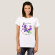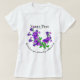 Purple flower with stems Sweet Peas botanical by artist on T-Shirt with text. Writing on shirt gives botanical name and countries origination. Delicate and beautiful flower brings a nature lovers message and reminder of the natural beauty of the earth.