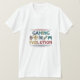 The "Gaming Evolution" t-shirt design depicts a timeline of gaming history, showcasing iconic elements from various eras. Imagine a silhouette of a controller morphing and transforming across the chest of the shirt. It could begin with a simple joystick or D-pad, then evolve into classic buttons and a directional pad, then progress to more modern designs with multiple triggers and sticks.