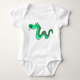 This white baby garment showcases a playful, bright green cartoon snake coiled in a wavy pose, decorated with colourful polka dots along its body. With a cheerful expression and flicking tongue, it’s a fun, eye-catching design perfect for little ones who love quirky, vibrant animals.