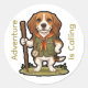 Embrace the spirit of adventure with this adorable Beagle Scout! 🌲🐾 Featuring a charming Beagle puppy dressed in a classic green wilderness vest, neckerchief, and backpack, holding a carved walking stick and hanging a working compass. This original illustration captures the unmatched joy of exploration. Perfectly isolated on a solid black background, making it an ideal choice for stickers, t-shirts, and outdoor gear for dog lovers. NO trademarked text or logos, just pure, adventurous fun