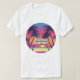 A T-shirt Endless Summer retro-style beach scene with palm trees, a sunset gradient sky, and text “Endless Summer”, vaporwave colours, vintage surf poster aesthetic.