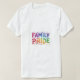 This t-shirt celebrates family pride with bold, multicolored text. "Family Pride" is written in a vibrant rainbow gradient, bursting with colour and perfect for showing off your love and support for your unique family.