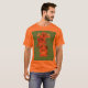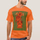 Add a splash of fun to your wardrobe with this vibrant orange T-shirt featuring a playful cartoon design! The artwork shows an adorable stack of cheerful animals—a happy dog at the bottom, a joyful cat in the middle, and a cute cat on top holding up two bones in celebration. Set against a deep green background panel, the warm red-orange tones of the animals perfectly complement the shirt colour. Perfect for animal lovers, or anyone who enjoys quirky, lighthearted fashion.