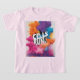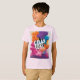 The background of the T-shirt fades from white at the top to a soft gradient of pastel hues at the bottom, creating a sense of movement and transition. Along the bottom edge, the event's logo is subtly incorporated, featuring the event name in playful, stylised typography.