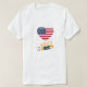 This t-shirt design features a bold, patriotic theme with a heart symbol filled with the American flag's iconic red, white, and blue stripes and stars. Beneath the heart, the word "BANG!" is written in large, playful letters, accompanied by an illustration of a small bullet-like graphic being fired. The overall design uses a vibrant colour palette, combining elements of both love and energy, making it a statement piece that stands out. The shirt’s casual fit and white background provide a perfect canvas for the striking imagery, ideal for those looking to express their love for the USA in a fun and lively manner.