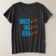Available in white, smoke (dark grey), and black. Want a different shirt style or fit? Zazzle makes it easy—just select your preferred shirt type and colour with a quick edit before you add it to your cart. They’ll print it, ship it, and you’ll be mocking bird-ing in no time.
