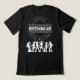 Two t-shirts, one white and one black, are displayed, both featuring a graphic design of dancing figures in 70s style attire. The scene composition presents two identical t-shirts side-by-side, eac h showcasing a graphic design centred on the chest area. The design depicts multiple stylised figures in mid-motion, representing a disco-era dance scene. The figures are arranged horizontally, forming a line of dancing individuals. The style is minimalist, using simple shapes and bold outlines. The overall design is symmetrical, with the figures mirroring each other in both shirts. The shirts are presented in a fashion-forward manner, showcasing the front of the garments, highlighting the graphic details. The key subjects are the dancing figures, representing a group of individuals engaged in a disco-era dance. The figures are depicted in silhouette form, emphasizing movement and dynamic poses. Each figure has a distinct pose, capturing the essence of a dance routine. The attire of the da Less