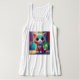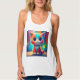 I had purchased the flowy tank for another graphic so I knew it would fit. Nice light fabric, perfect for summer, doesn't cling. The white can be a little shear, you can definitely see your bra through it so if that bothers you, go for a darker color. I have worn this out during the day, and at the gym. The colors are washed out. The blue is more of a pale light blue as compared with the graphic displayed on the website. I would have liked the colors a little more saturated but still nice.