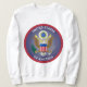 Very pleasant design showing the Great Seal of the United States within a circle shape made of the national colours.
