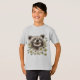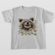 T-shirt with a print of a happy smiling racoon amidst daisies.