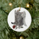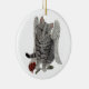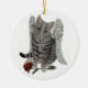 grey tabby cat angel with rose ornament