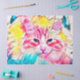 Cute tabby cat blue, pink, yellow, black art close up. Girly craft decoupage tissue paper. Trendy, chic, modern, cool, stylish colourful pop art inspired design. Cat lovers gift wrap. Image copyright Marg Seregelyi Photography.