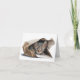 Watercolor artwork of a cute grey tabby cat in brown paper bag for blank note card.
