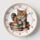 The image on this cute clock is of a brown tabby striped kitten laying on a stack of vintage books. The gold brown numbers around the perimeter make the clock easy to read.