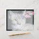 A colour pencil and pastel drawing of a one eyed smoke tabby cat adorns this customisable stationary!