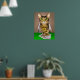 Poster in a portrait of a brown and tan tabby cat playing cards - and winning