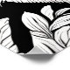 Poster in in a black and white portrait of a tabby cat with wide eyes, in a garden surrounded with flowers and foliage .