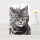This fun card for cat lovers and cat owners features a close-up photograph of the face of a beautiful silver haired tabby cat with real attitude. She seems to be saying, Who you lookin' at? I've used selective colouring to bring out the beauty of her big eyes and sweet tawny nose.