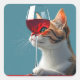 A cat curiously peers through a wine glass filled with red wine, distorting its face amusingly