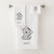 Cute tabby kitty cat and name text on white Bath Towel Set.