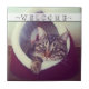 This ceramic tile features my close-up photograph of an adorable grey and brown tabby with his paw hanging out of his little hut that was run through a vintage effect. Fill in the template field with something you'd like to say to personalise or click the customise to select a different font style, size and colour. In customise you can remove the white bar to have just the photograph.