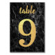 The table number 9 and the word "table", written in a handwriting script, are faux gold foil. The background is white marble.