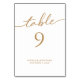 Table 9 Gold Calligraphy Personalised Wedding Table Number Card... Our "table 9" wedding table number card features elegant gold calligraphy script followed by the table number and the bride and groom's names and wedding date. Table numbers 1 through 12 are available in the same design and are sold separately.