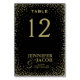 A black background table card with gold "faux glitter" confetti artwork that is ideal for a wedding, however, you can also change the text to suit any occasion. (Don't forget to order each card number individually, also you can change the background colour too. ) Note this is a graphic art print and contains no messy glitter. Have a wonderful event!