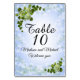 Table card numbers for wedding, engagement, anniversary or birthday party or retirement party table number cards. Pretty Spring Hydrangeas flowers and ivy leaves, soft blue background. 2 sided cards.