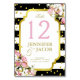 Table Card | Stripes, Gold Confetti, Pink Roses