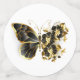 Gold flower butterfly with black jewelry orchid, decorated with gold leaves on white background.