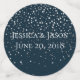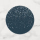 This table confetti is shown in a navy blue colour with a petite silver stars print design also with a custom wedding names sample.
