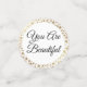 These table confetti pieces are a mix of Black and White double sided with well-wishing comments for your pageant's titleholders. Graphics of petite Golden-coloured stars grace both front and back around the edges. Simple, yet elegant design. Sample texts are "Wear your crown", "you are beautiful", "reach for your dreams" and the flip sides are the silver pageant crown. Customise this item or buy as designed.