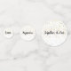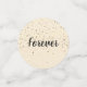These table confetti pieces are a mix of Champagne and White double sided with well-wishing comments for the bride and groom. Graphics of petite golden and champagne coloured stars grace both front and back. Sample texts are "Jason & Emily", "congrats", "Happiness"."Together As One", "Love", "Forever". Customise this item or buy as designed.