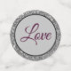 These table confetti pieces are a mix of Black, Silver and Wine/Plum. One side has a Graphic of Wine/Plum glitter print and the other has a Silver glitter print with text for you to customise or buy as shown. Text reads " Love", "Congrats", "Names-sample shown is Gregg and Lisa". Customise this item or buy as designed.