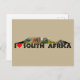 Part of our South African Landmarks collection, we have taken Table Mountain and it made it wild, With photos of various African wildlife in the shape of Table Mountain on this postcard. This one has the phrase I Heart South Africa in black text.