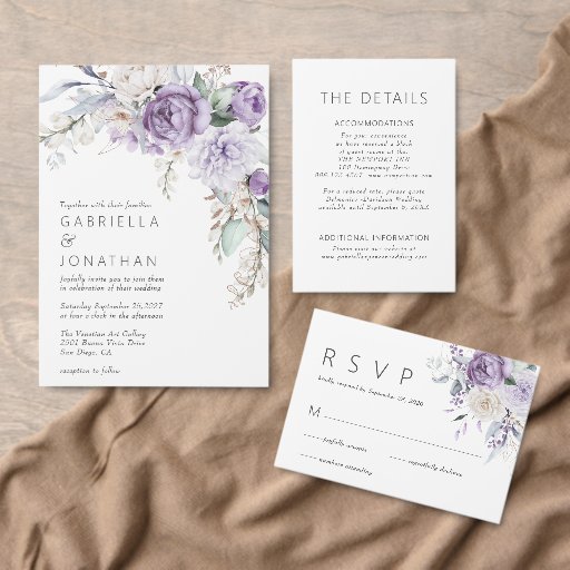 Elegant Watercolor Purple Floral Wedding SuiteDesigned by Antonetta T
