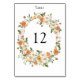 This charming table number card features a delicate wreath of watercolor flowers and lush greenery encircling the number at the centre. The floral wreath, in soft shades of peach, white, and pink, adds a natural, romantic touch to each table. The elegant, easy-to-read number is prominently displayed in a classic serif font, ensuring visibility while maintaining a refined aesthetic. Perfect for weddings, receptions, or any elegant event, these table number cards blend effortlessly with floral and garden themes, adding both beauty and function to your table settings.