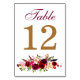 Table Number Card - Burgundy Florals