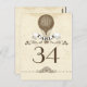 vintage chic design table number cards with hot air balloon drawing, nice typography and swirl, scroll elements.
