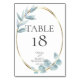 Wedding Table Number Card | Watercolor eucalyptus leaves in tones of dusty blue with a gold oval frame. Customise text, font style, colour and size. Original artwork created for the BarefootBride™ by © WhimsicalArtwork™ - This is part of a complete Wedding Stationery Suite with matching wedding, baby shower and other event stationery.