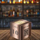 For restaurant, cafe, bar tables, Personalise and add your business logo, table numbers and QR code for your menu. A faux bronze looking background, black text.