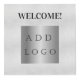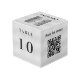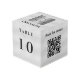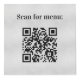 For restaurant, cafe, bar tables, Personalise and add your business logo, table numbers and QR code for your menu. A faux silver looking background, black text.