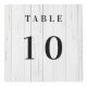For restaurant, cafe, bar tables, Personalise and add your business logo, table numbers and QR code for your menu. A white rustic wood print as background, black text.