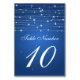 Elegant wedding "Table Number" design with romantic Sparkling Lines Sapphire Blue motif, custom names and date text. Impress your family and friends with this stylish and modern design. Fully customisable! Easy to use and easy to personalise.