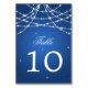 Elegant wedding "Table Number" design with Sparkling String Blue and custom table number text.