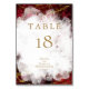 Wedding Table Number Card | Rich ruby red gemstone crystal geode accented with sparkling marbled gold nugget veining and quartz crystal - coordinating reverse.
