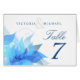 Sapphire Blue and White Abstract Floral -- Personalised Table Tent cards -- Beautiful contemporary abstract flowers in a bright translucent blue and aqua on white background. Beautiful bold typography customisable numerals. Stylish enough for trendy modern brides, but with a touch of traditional class and vintage garden impressionism charm. Elegant and affordable custom wedding invites and cards priced for frugal brides on a budget. Please contact us if you would like this design modified to match your bridal party colour theme. Matching invitations, postage, and complete ensemble wedding packet available upon request.