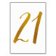 Table Number 21: This casual brush script table number card is set in a faux gold foil.